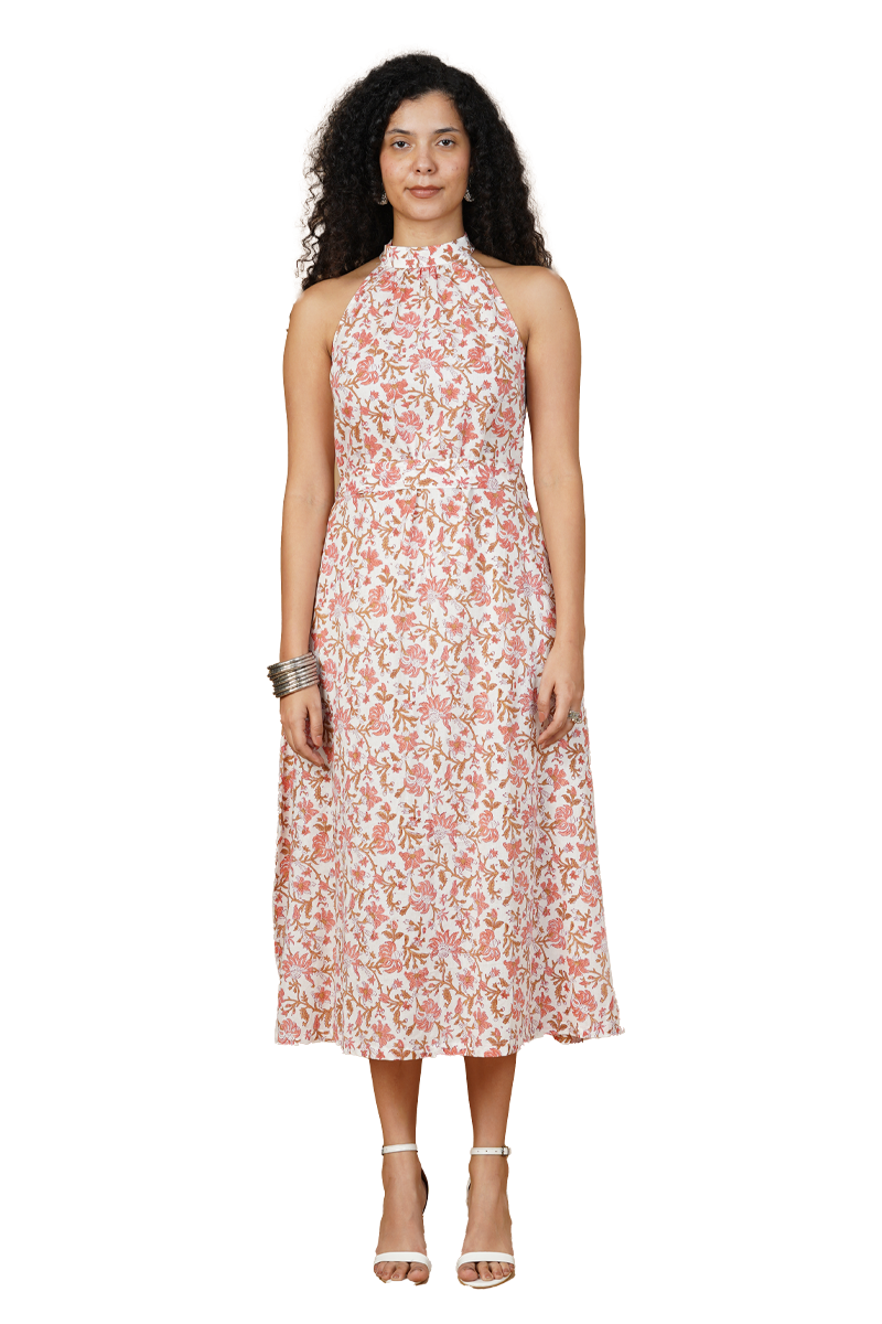 Pink Blockprint Midi Dress