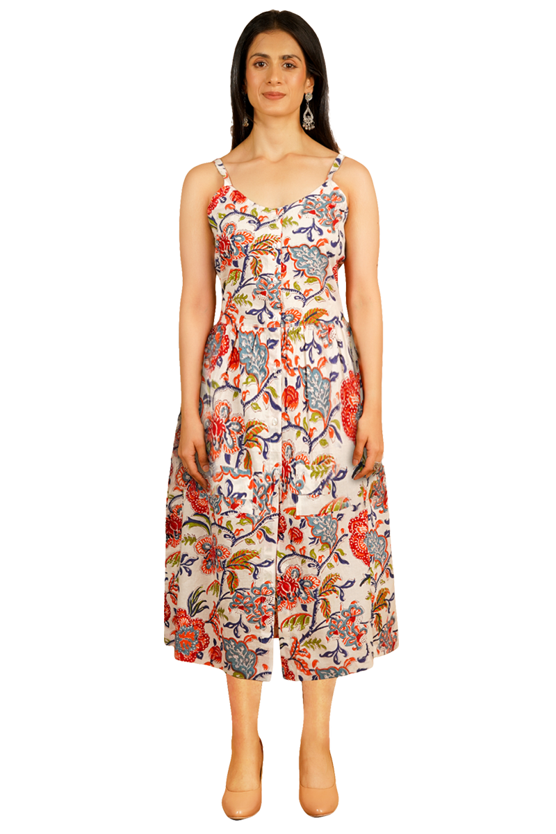 Bagru White Midi Dress