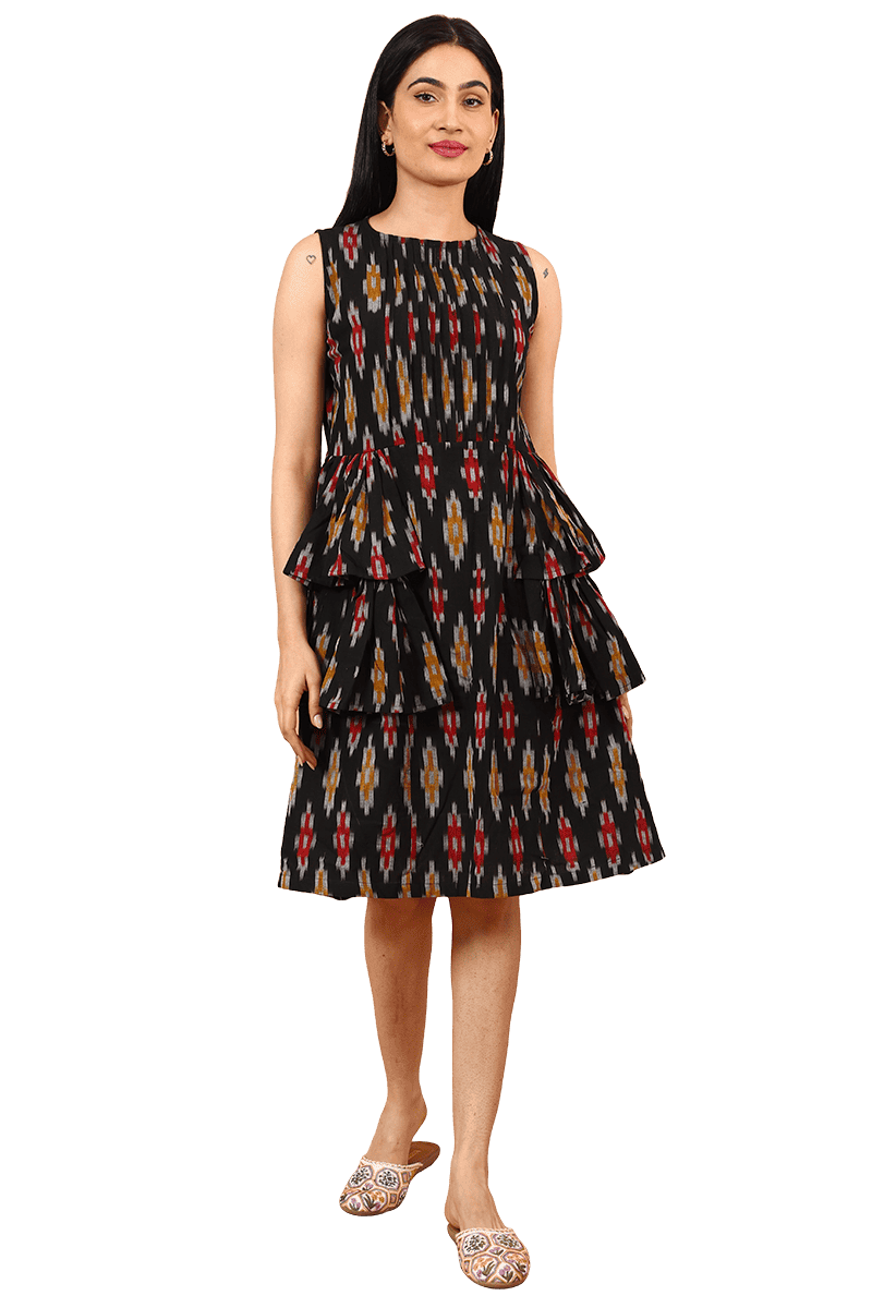 Ikat-Black-Cotton-Midi-Dress-DS304