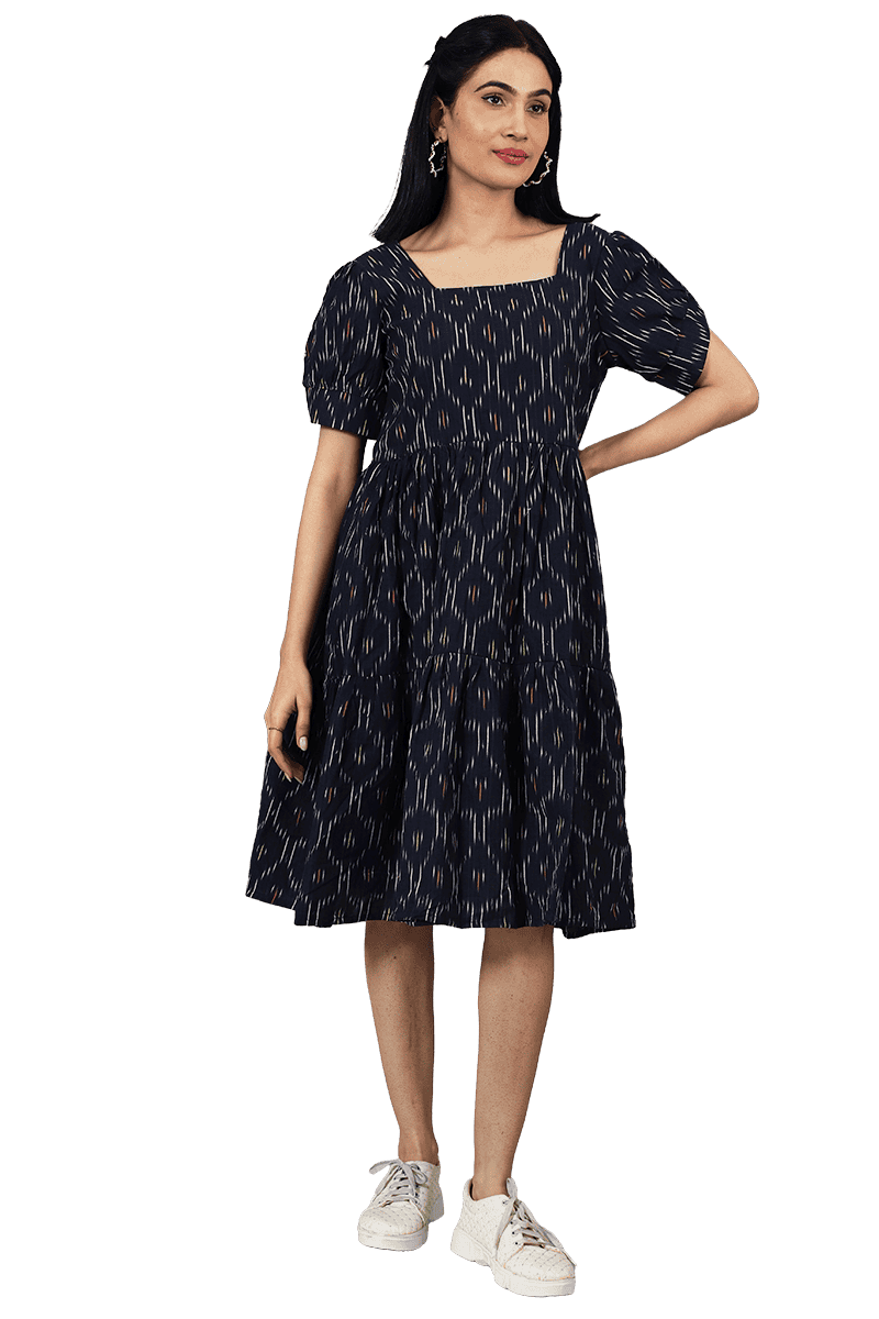 Ikat-Black-Cotton-Midi-Dress-DS314