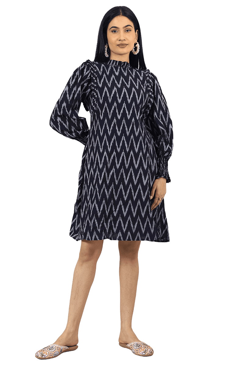 Ikat-Black-Cotton-Mini-Dress-DS312