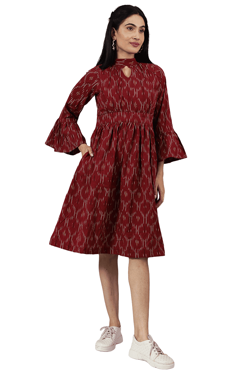 Ikat-Red-Cotton-Midi-Dress-DS315