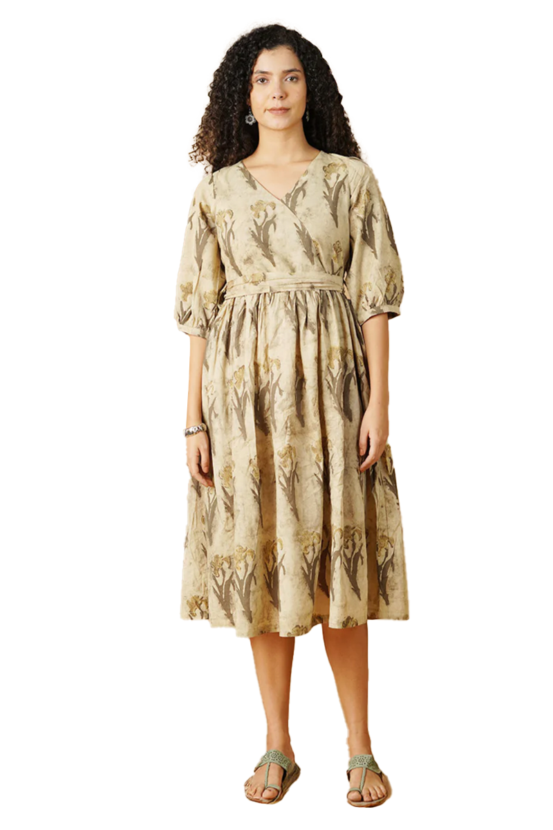 Bagru Cotton Beige Midi Dress