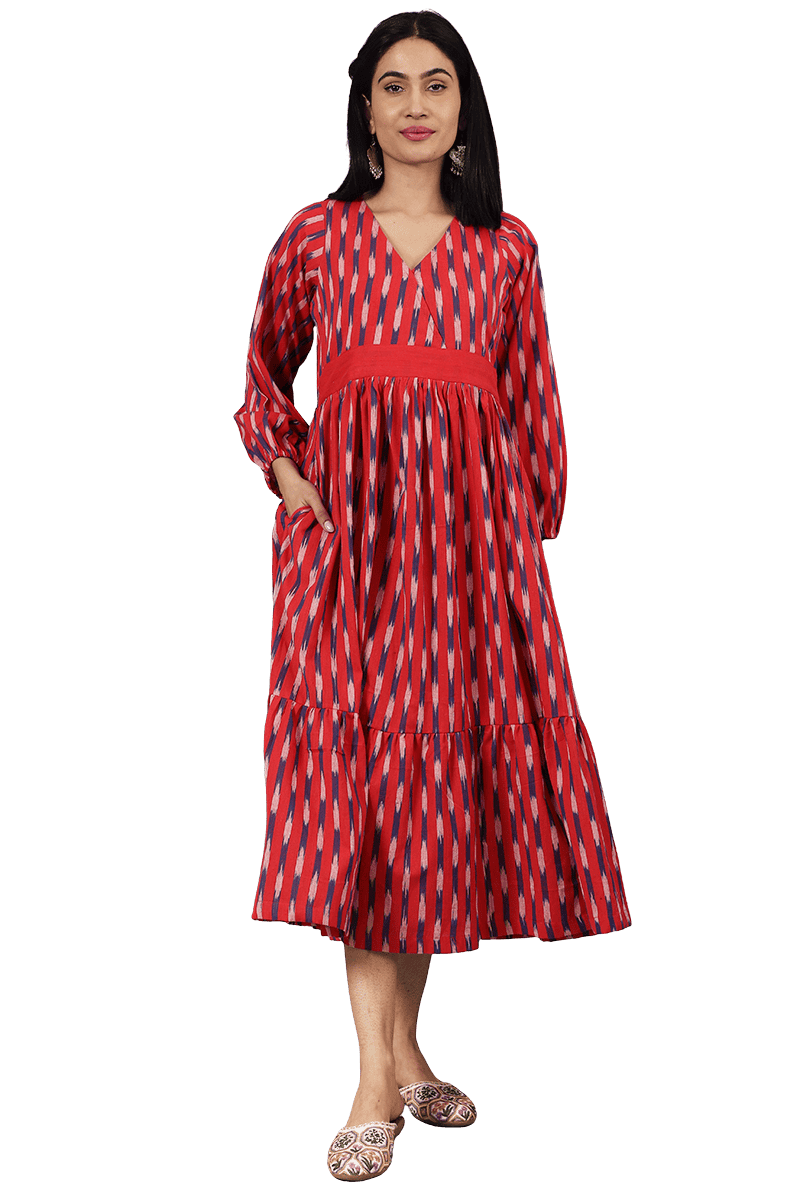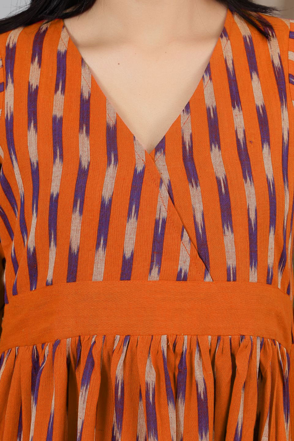 Ikat Orange Cotton Maxi Dress