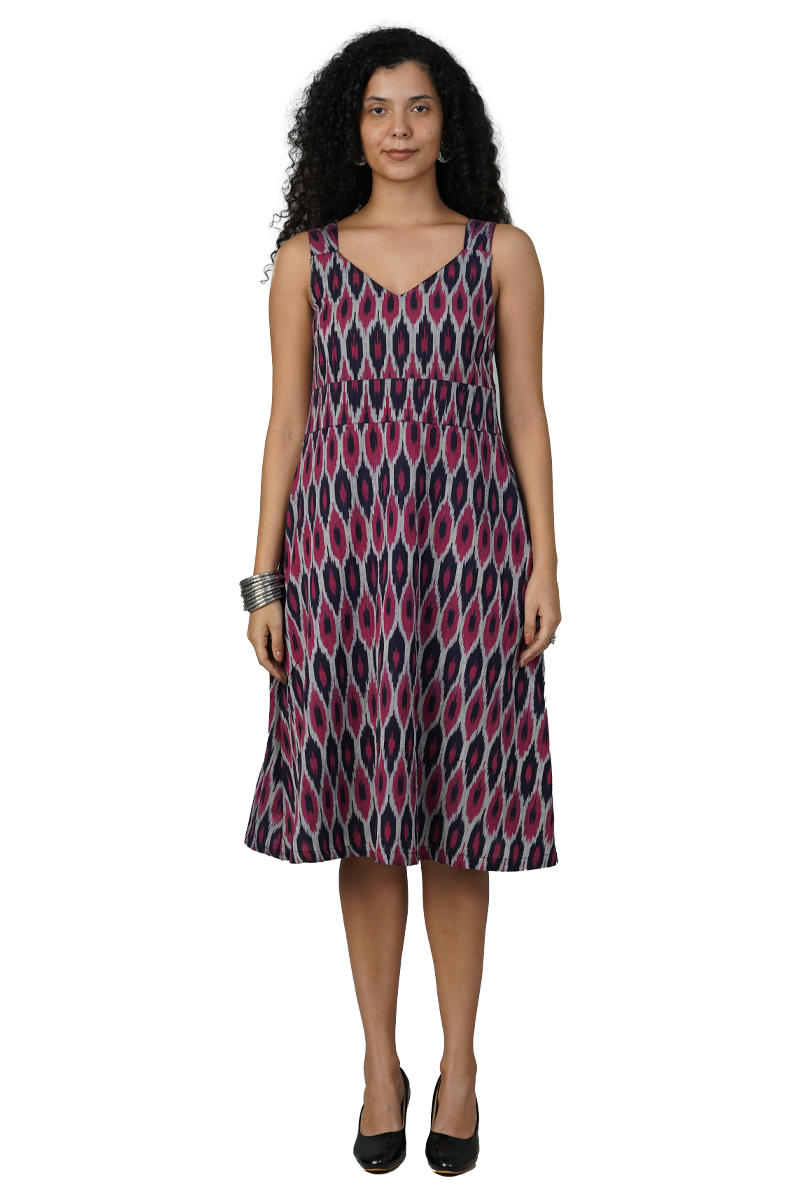 Blue Blockprint Midi Dress