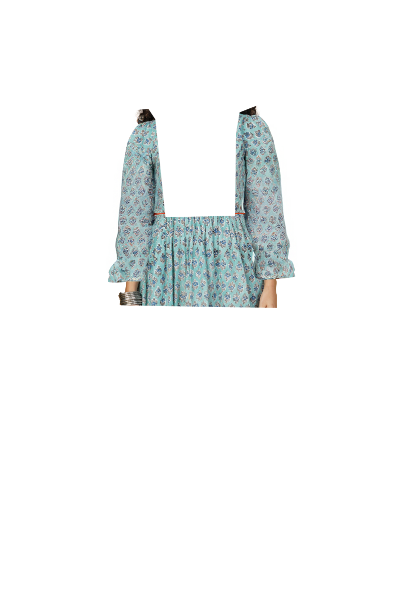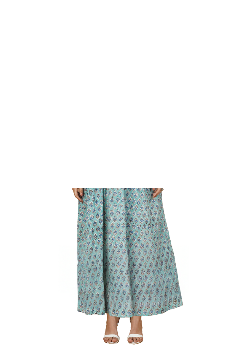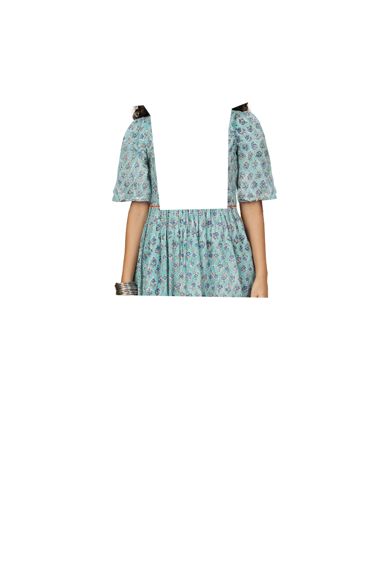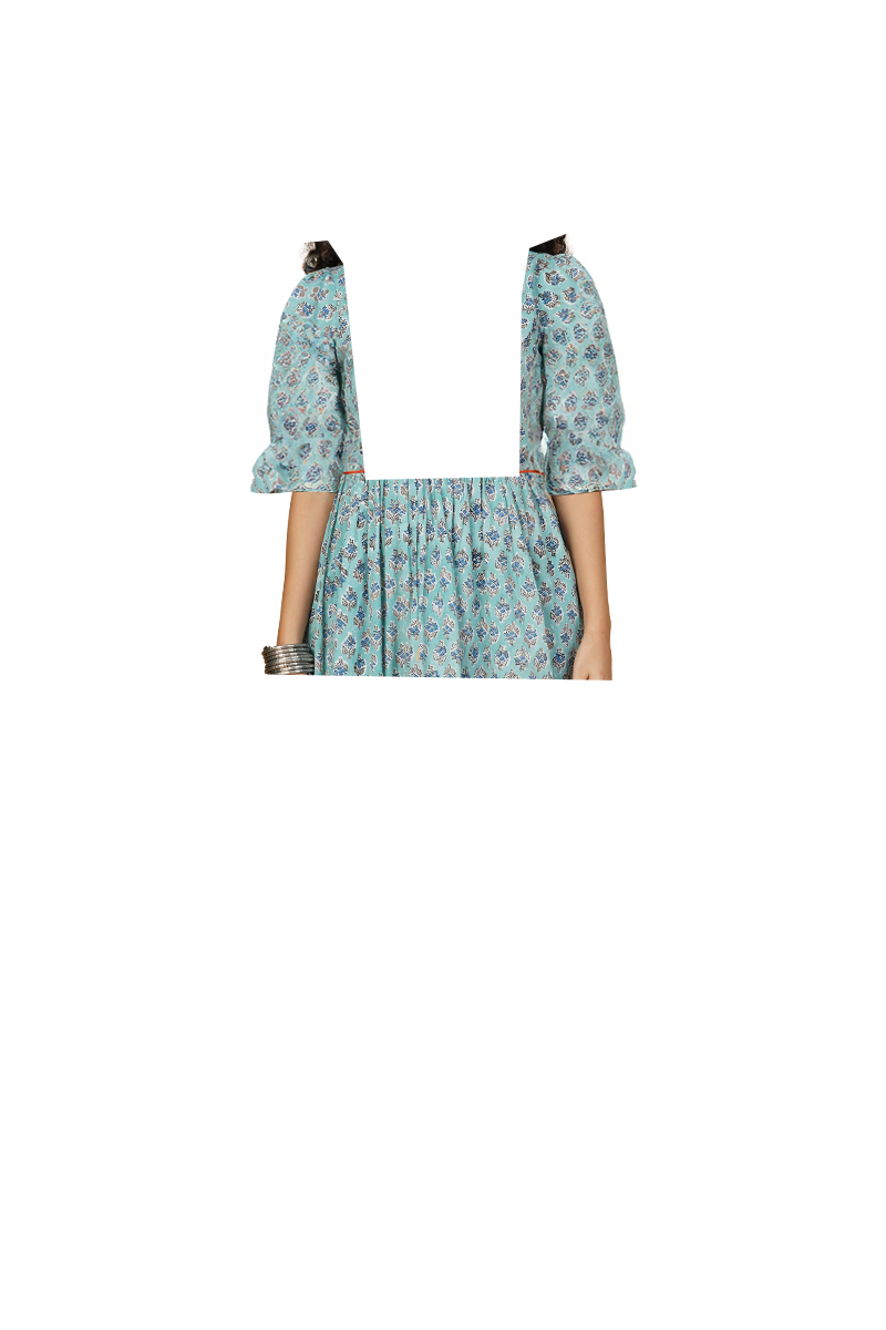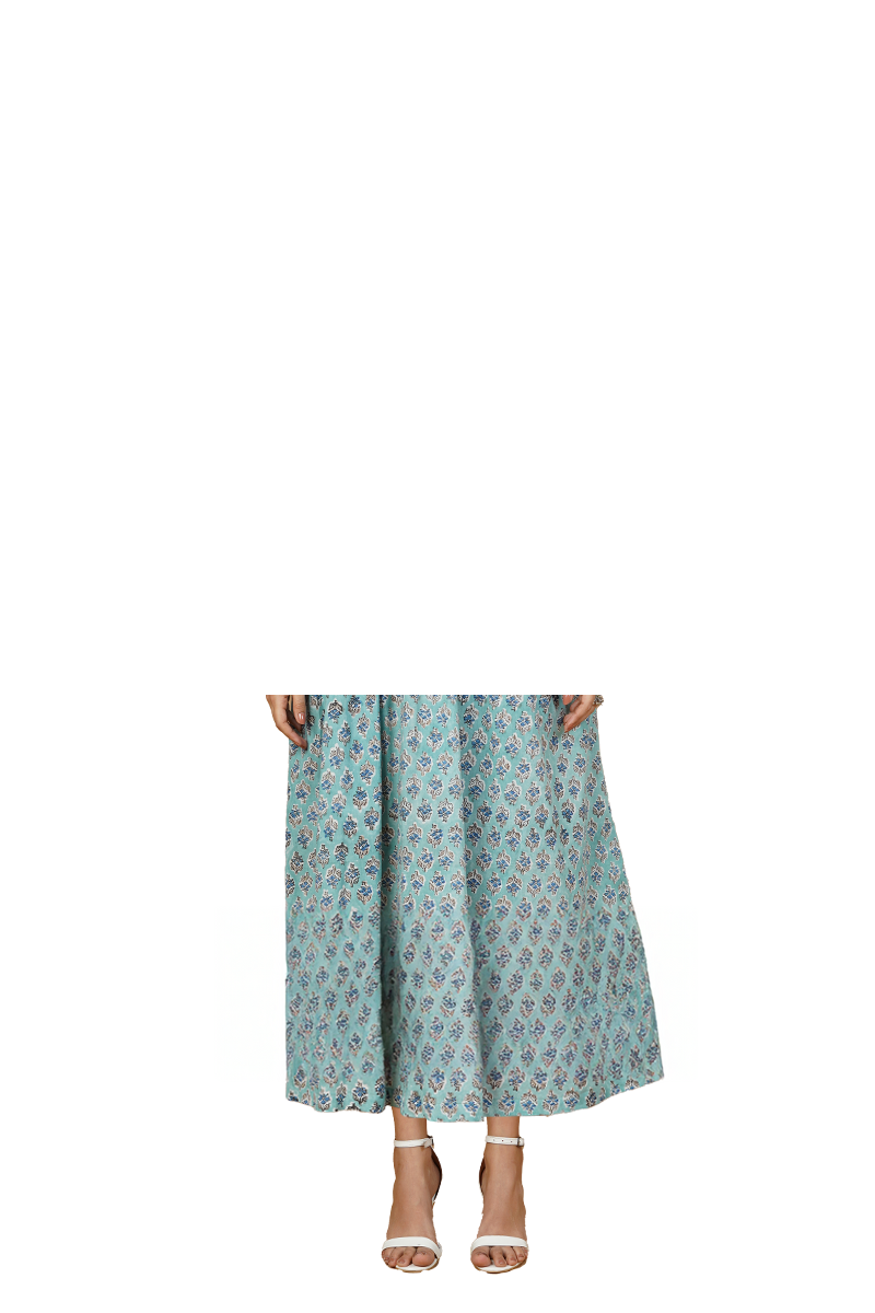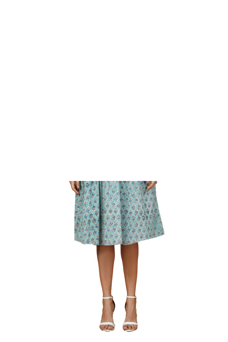 Blue Blockprint Midi Dress