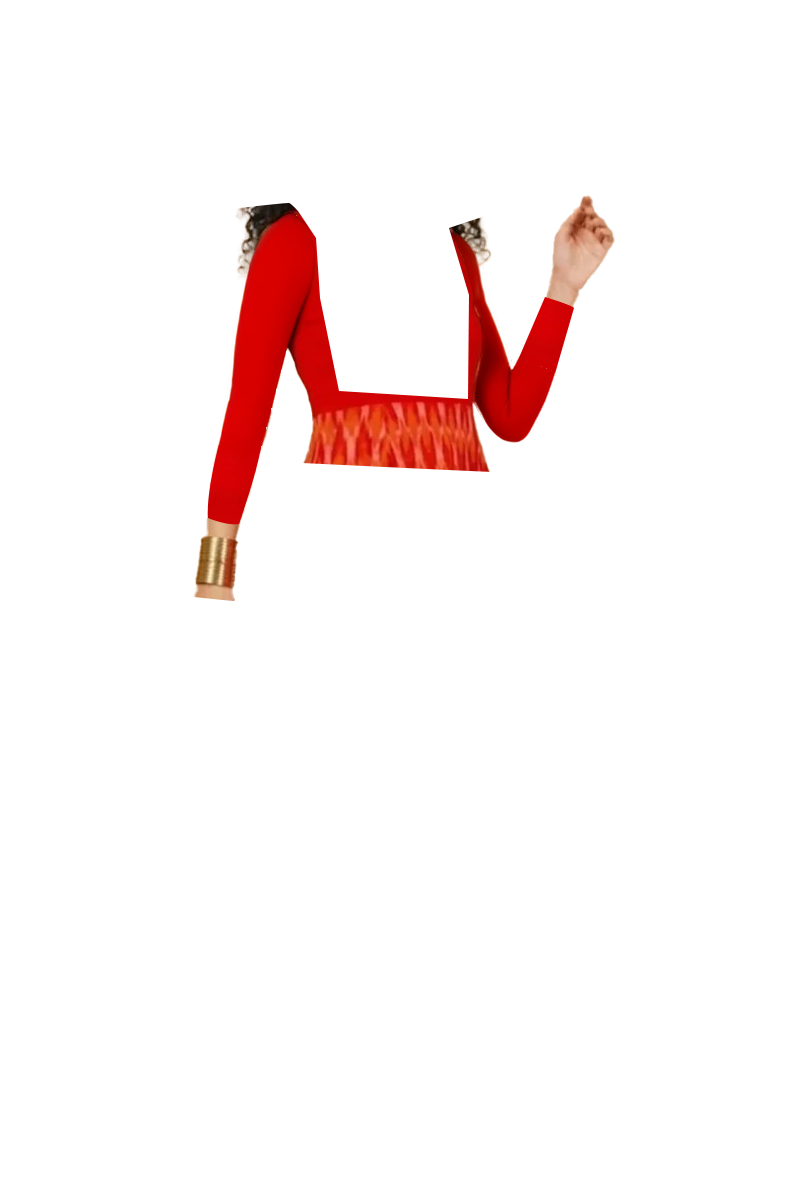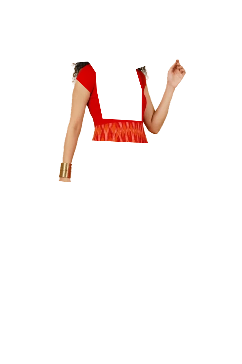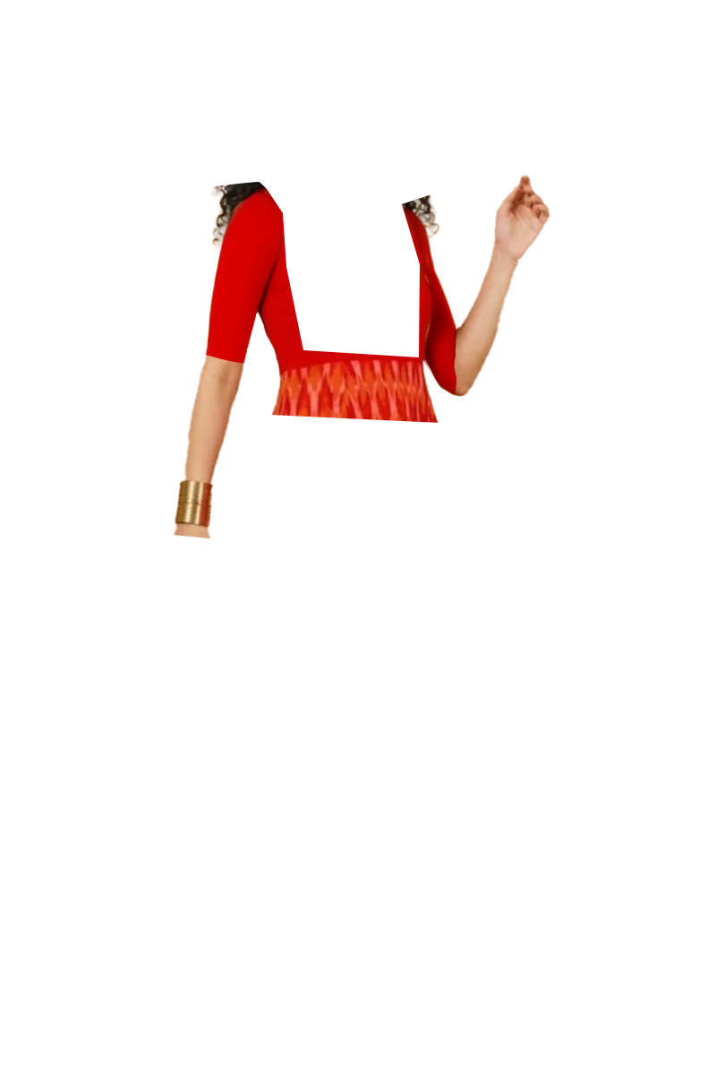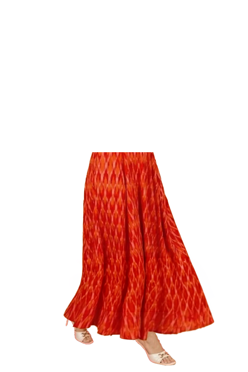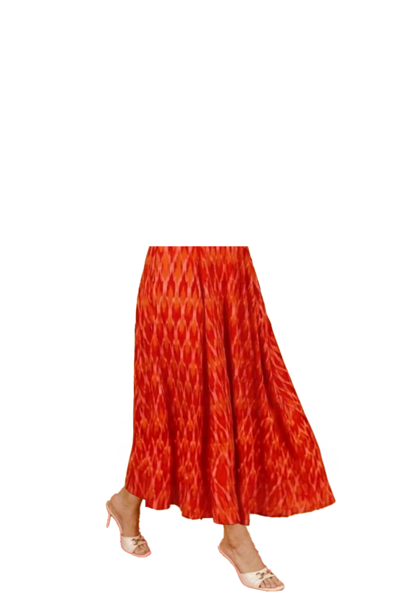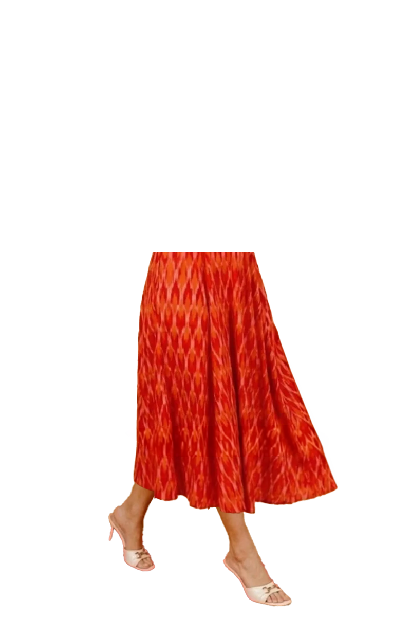 Red Ikat Midi Dress with Cotton Jersey Bodice