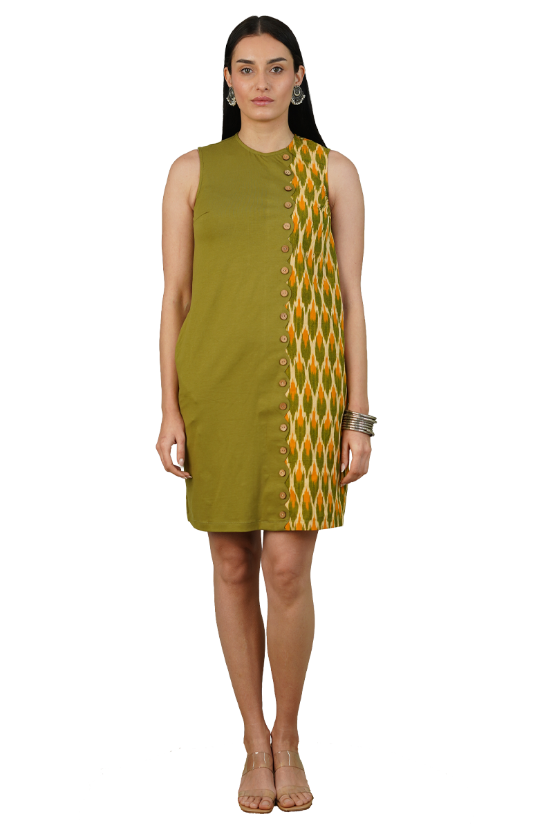 Green Jersey & Ikat Cotton Dress
