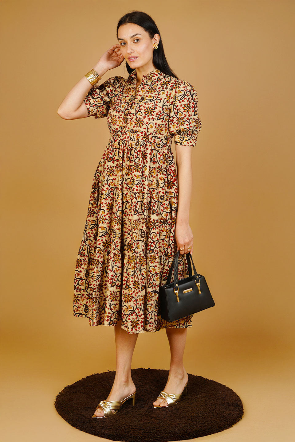 Brown Bagru Cotton Midi Dress