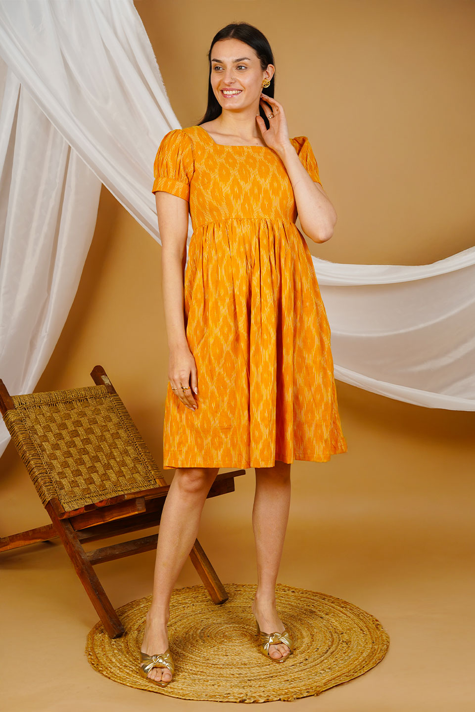 Orange Ikat Cotton Midi Dress