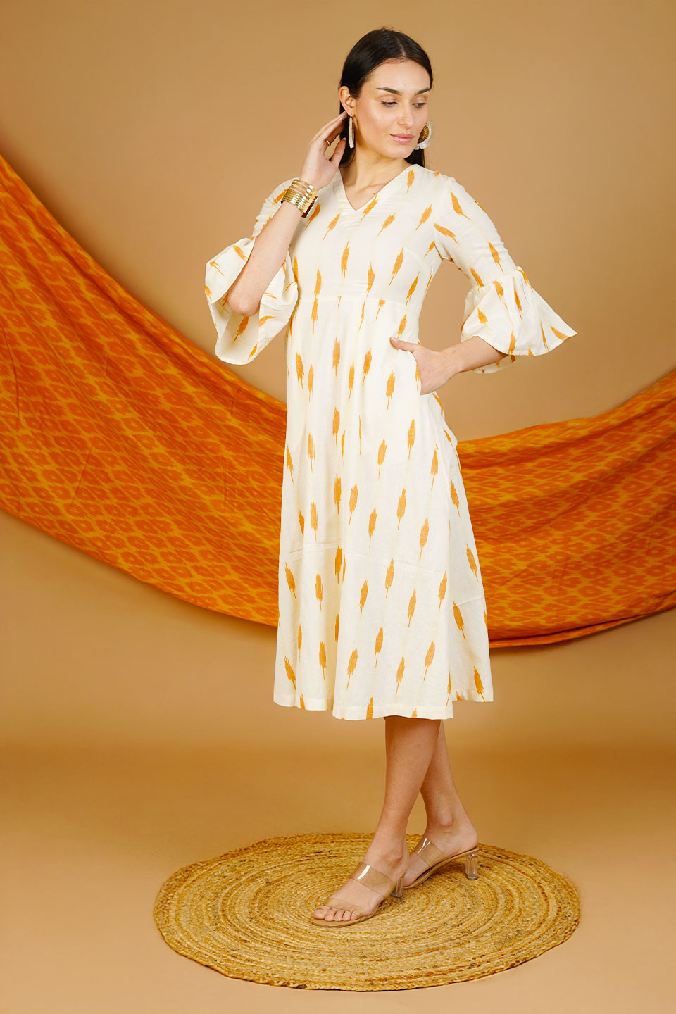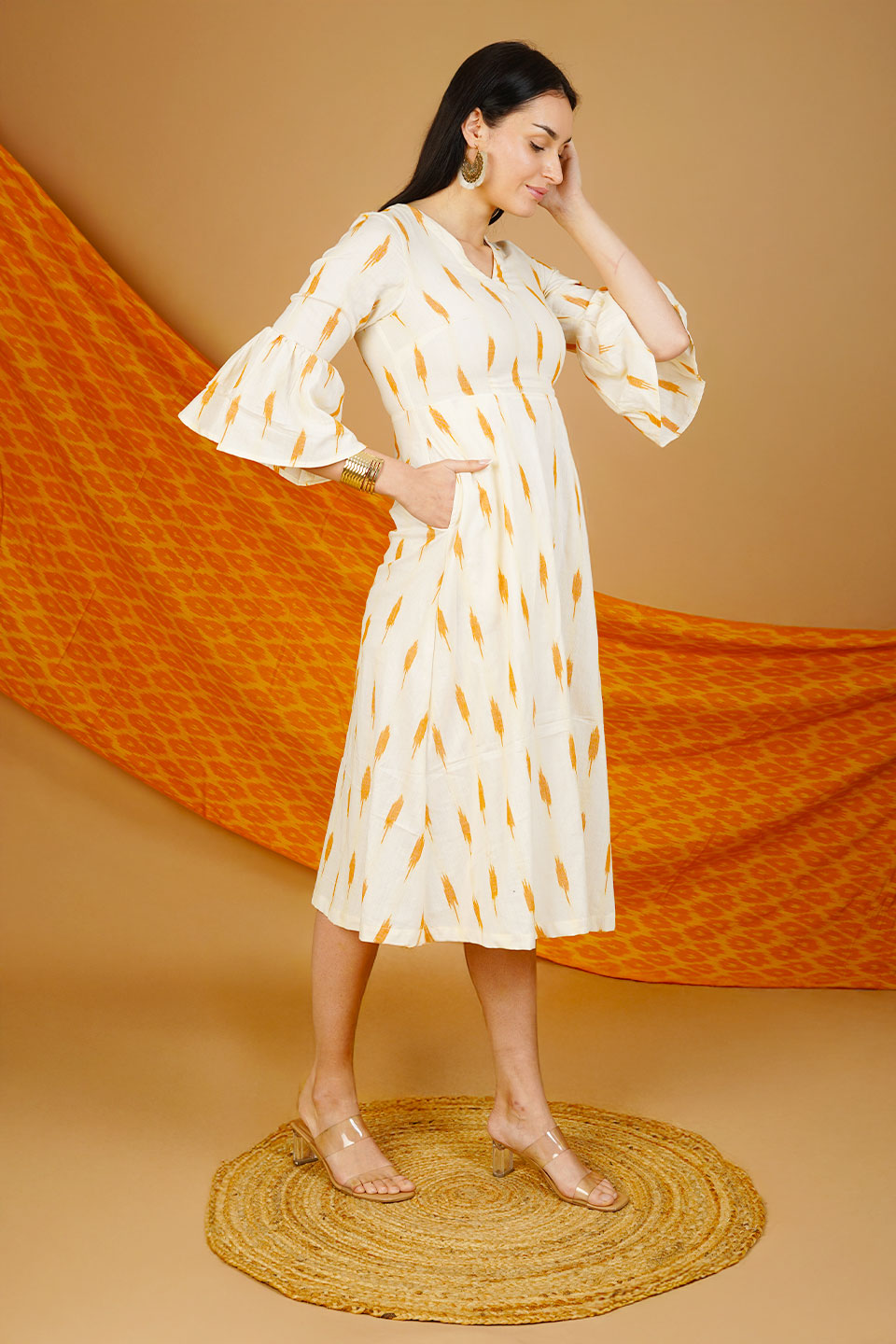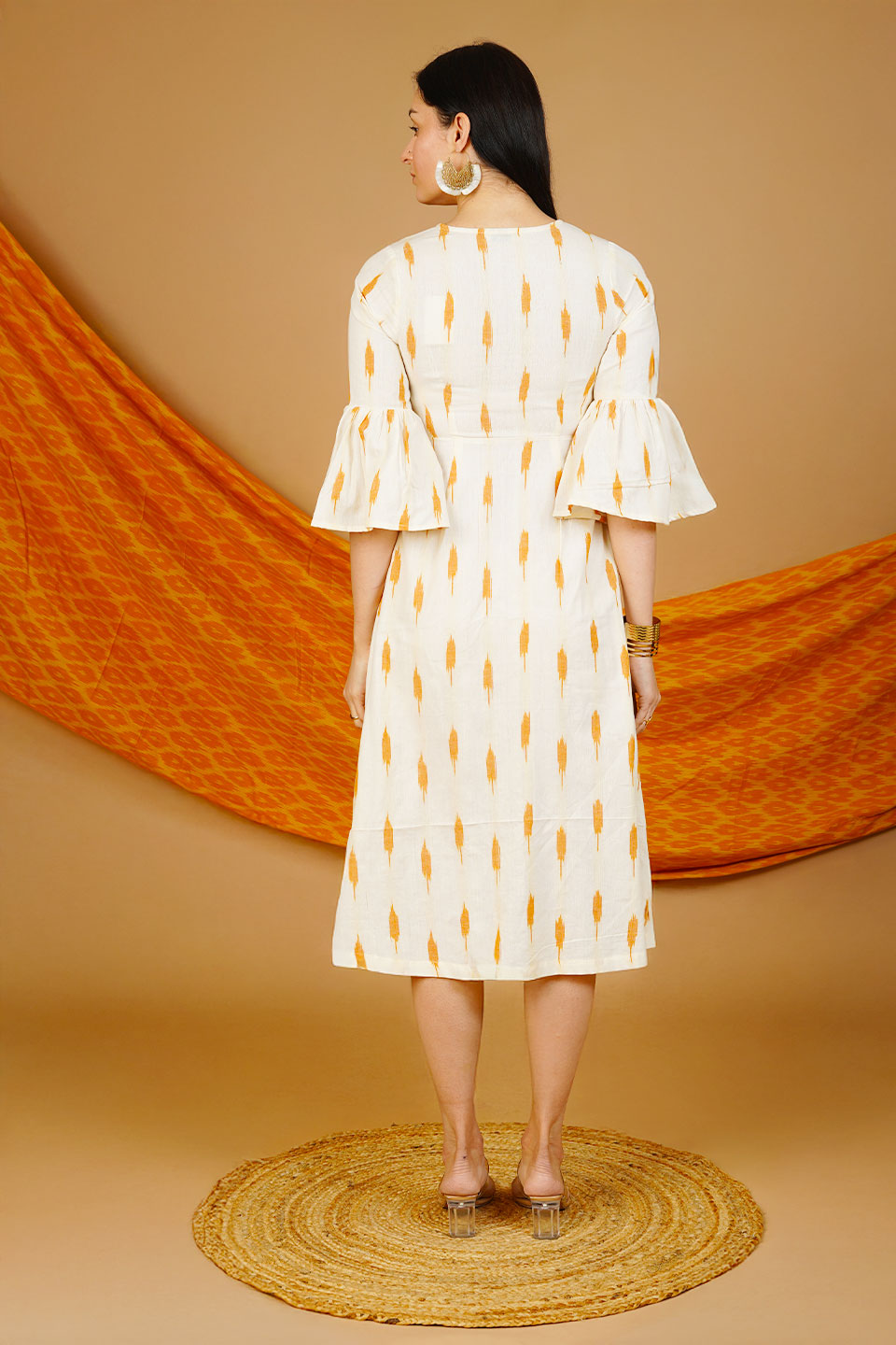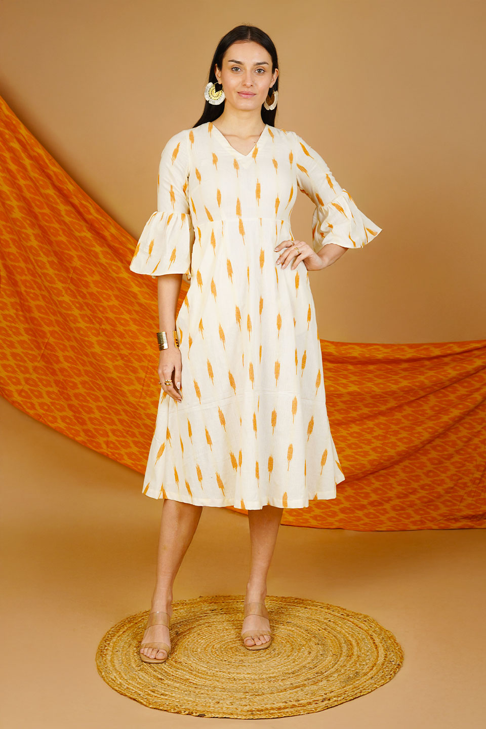 Cream Ikat Cotton Midi Dress
