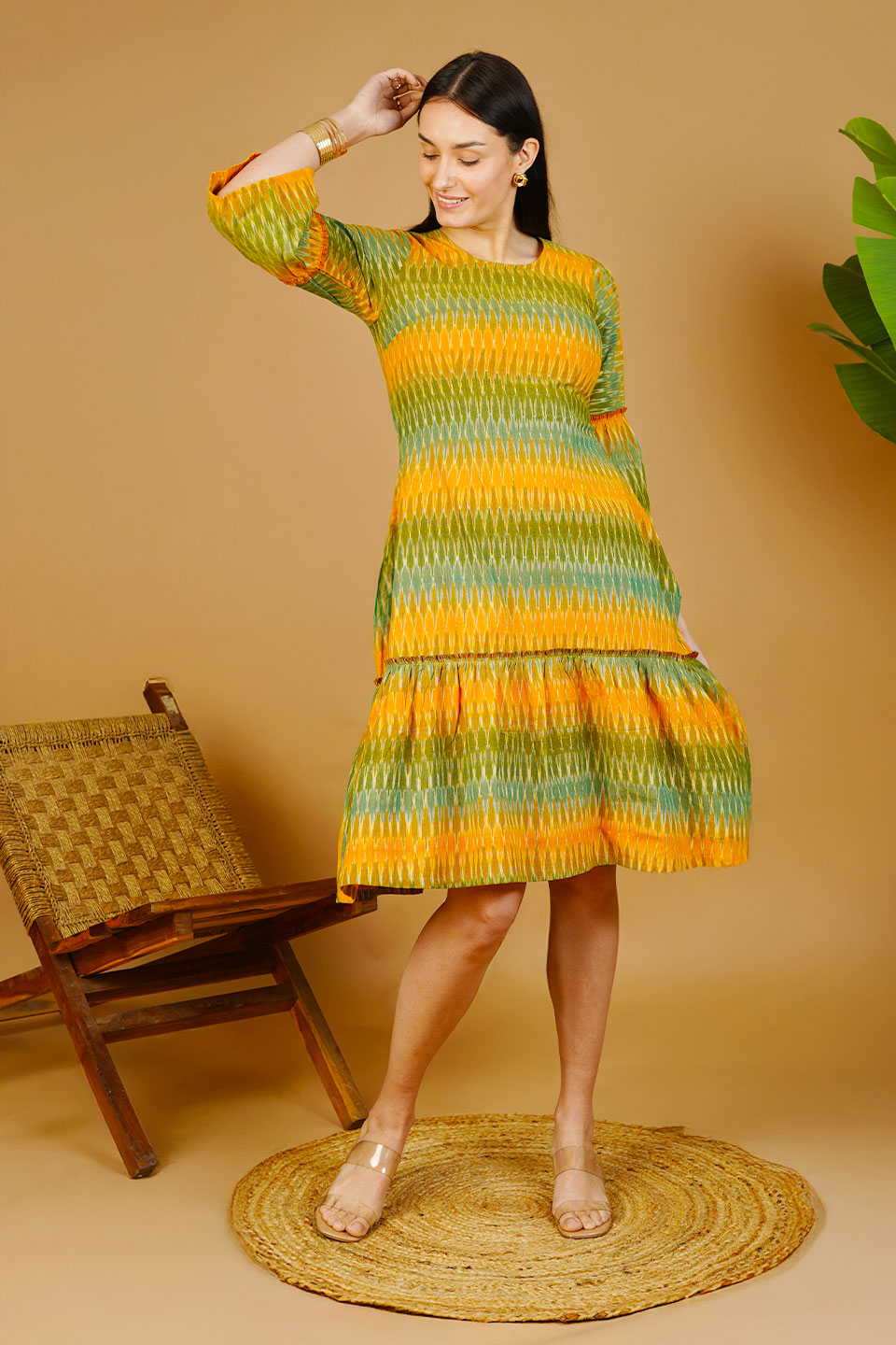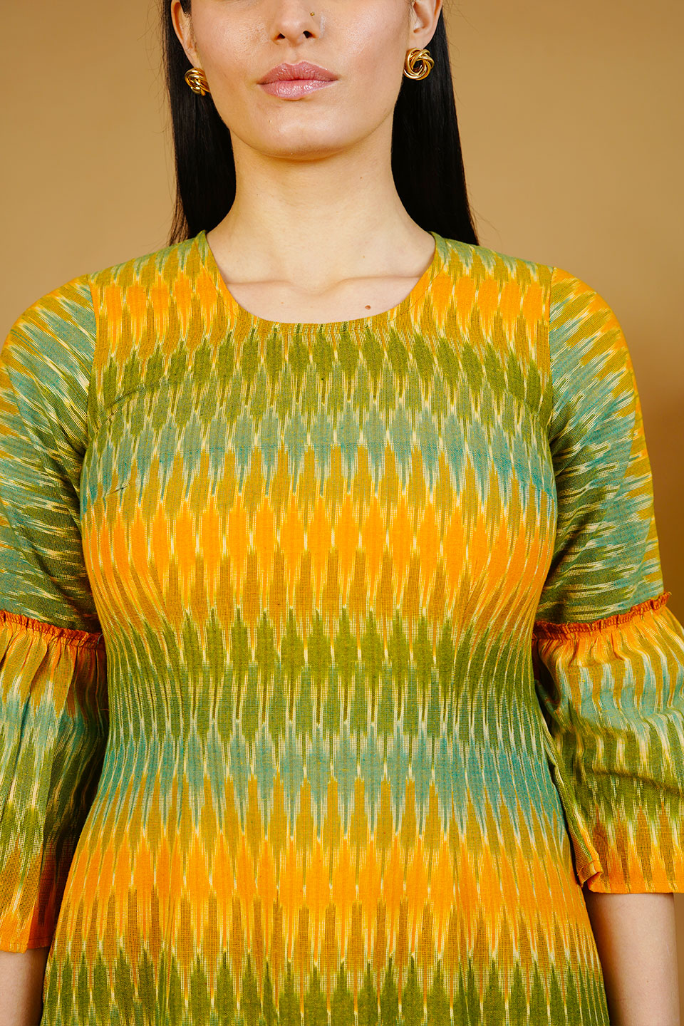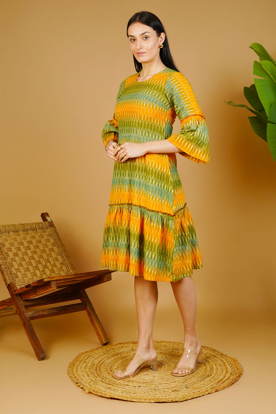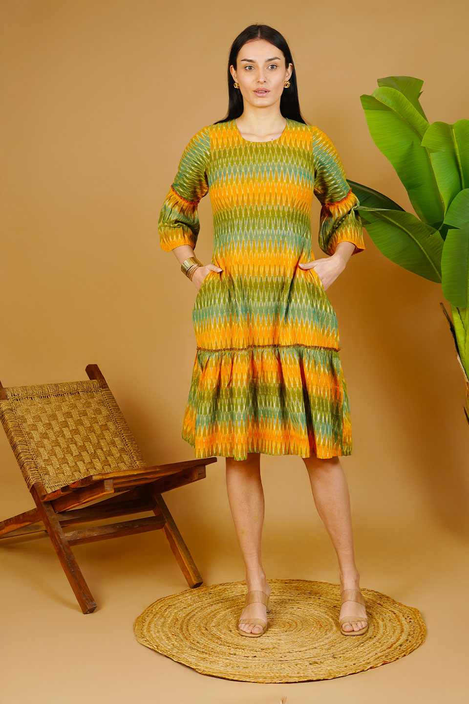 Green Ikat Cotton Midi Dress